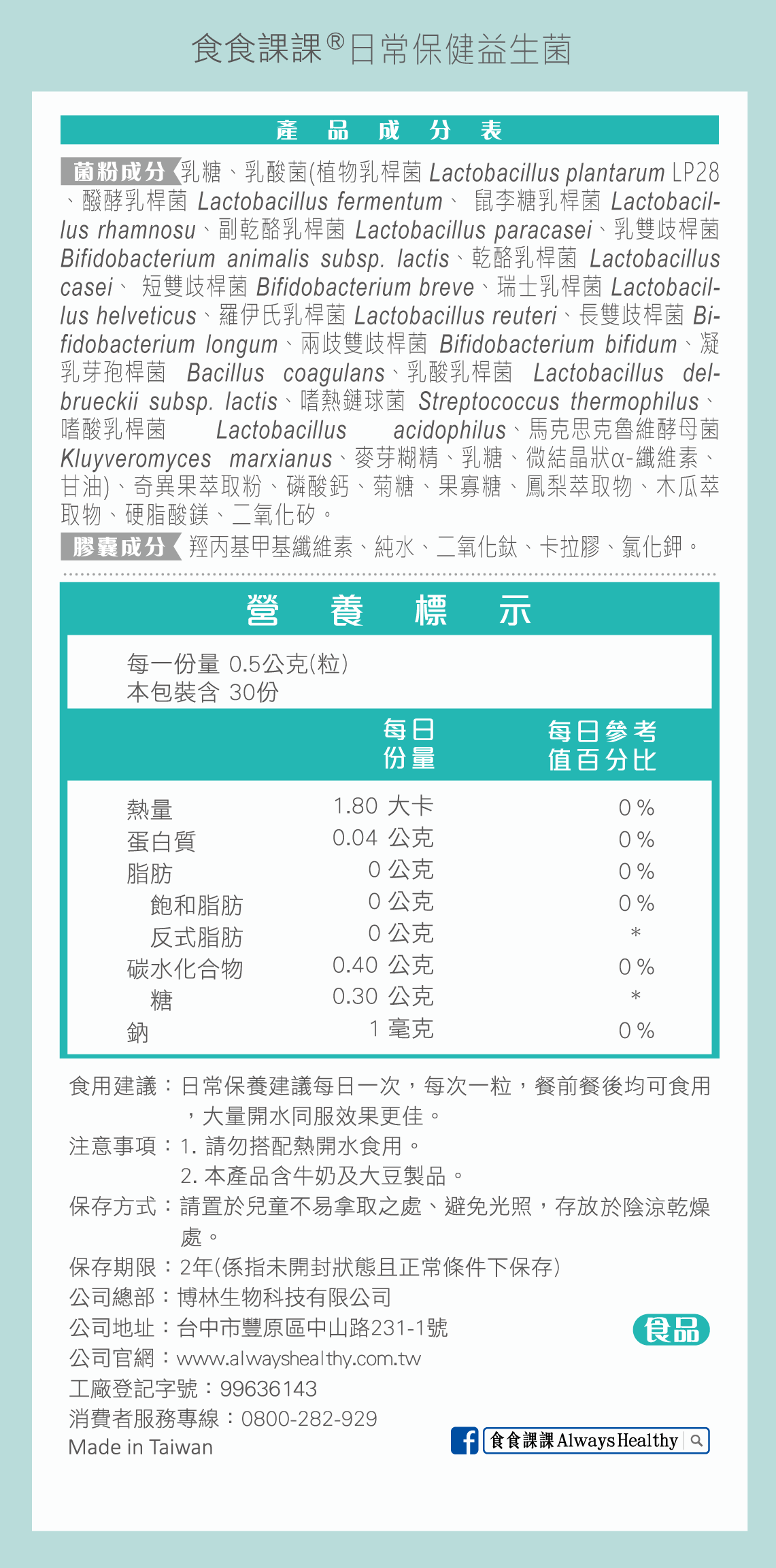 【食食課課】日常保健益生菌(使排便順暢 幫助消化)